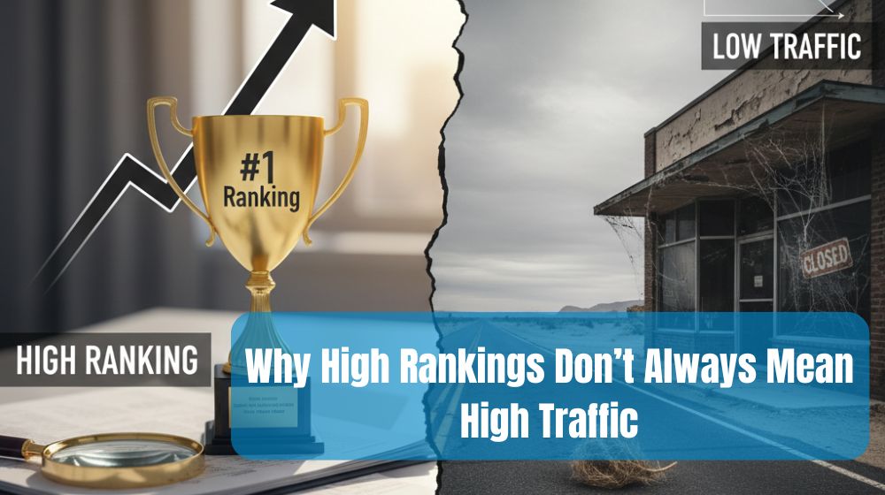 The most common reason for high ranking but low traffic is surprisingly simple: Nobody is searching for that specific phrase.